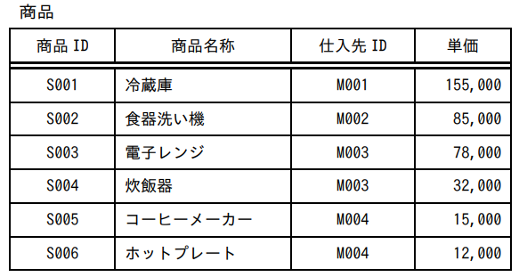 SELECT * FROM 商品 WHERE 仕入先ID = ‘M004’