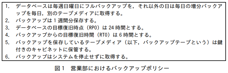 営業部では、図1に示すバックアップポリシーを順守している。