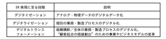 問題文中の表ではDX実現までを次の3段階に分けています。
