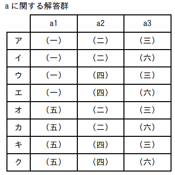 設問 本文中の [ a1 ] ~ [ a3 ] に入れる次の字句の組合せはどれか。 a に関する解答群のうち、最も適切なものを選べ。